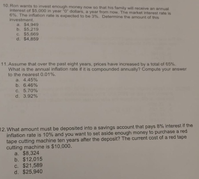 Solved 10 Ron Wants To Invest Enough Money Now So That H Chegg Com
