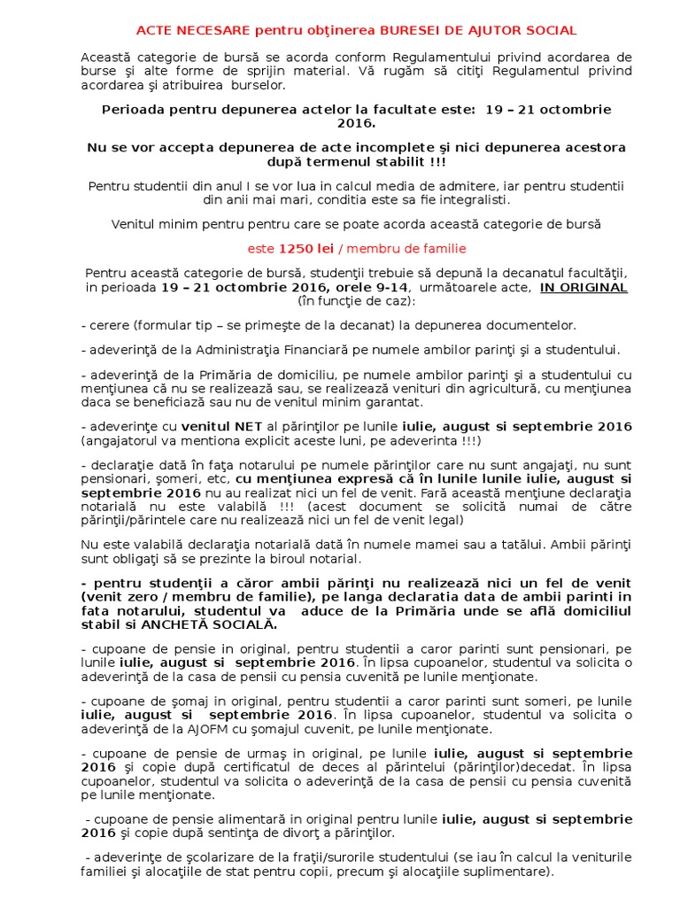 Acte Necesare Pentru Obţinerea Buresei De Ajutor Social Este 1250 Lei Membru De Familie
