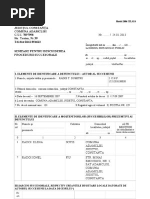 Anexa 24 reprezinta conform legii sesizarea pentru deschiderea procedurii succesorale adresata notarului public. Www primariadeva ro anexa 24 sesizare pentru deschiderea procedurii succesorale selectaţi limba deva piata unirii nr 4 0254 213435 232310 218325 fax. Cu multumiri valentina butunoi. Anexa 23 reprezinta certificatul de atestare fiscala care insoteste anexa 24 pentru dezbaterea succesiunii si se elibereaza de biroul taxe si impozite al primariei.