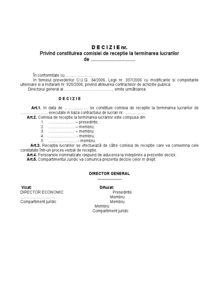 Model Proces Verbal De Receptie La Terminarea Lucrarilor