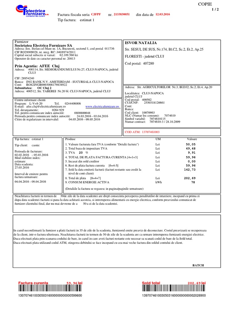 Fact Etn 8048639 01 20190415 0 Pdf A U00df Copie 1 2 Factura Fiscala Seria Cjfpf Tip Factura Estimat 2 Nr 2146339760 Furnizor Societatea Electrica Course Hero