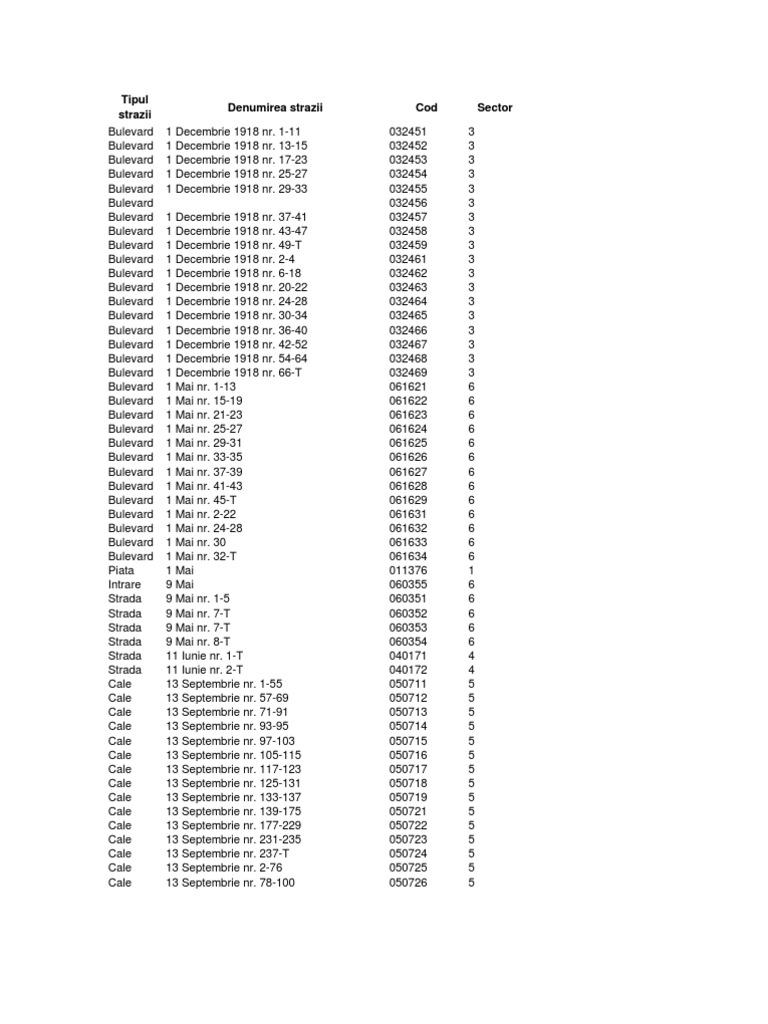 Coduri Postale Coduri Postale Sector 3 Bucuresti Romania