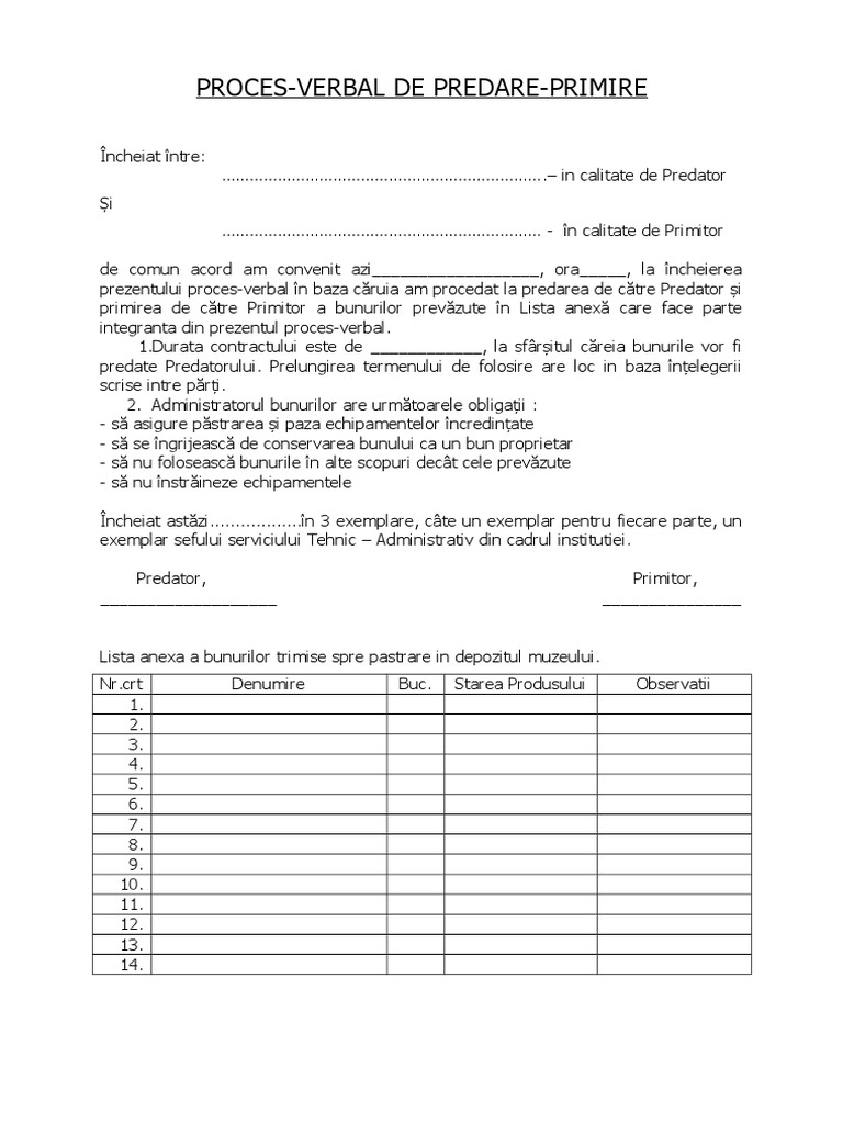 Model Proces Verbal Predare Primire Documente Telegraph