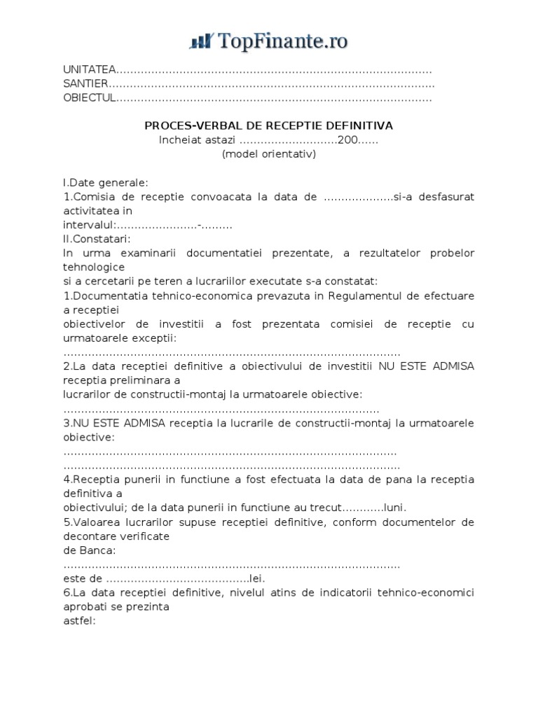 Proces Verbal De Receptie Finala