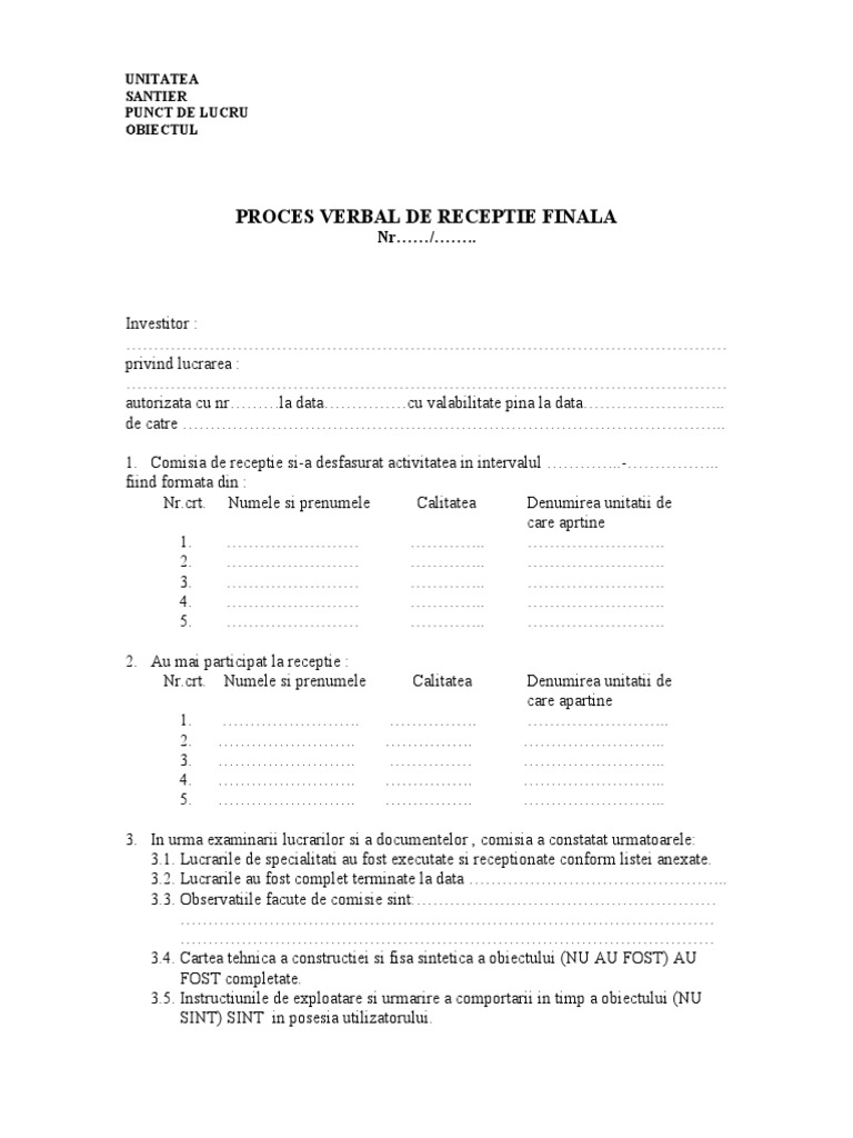 Descarcă Model Proces Verbal Recepție Lucrări H G 343 2016 Doc și Pdf Colegiul Tehnic Al Diriginţilor De Santier