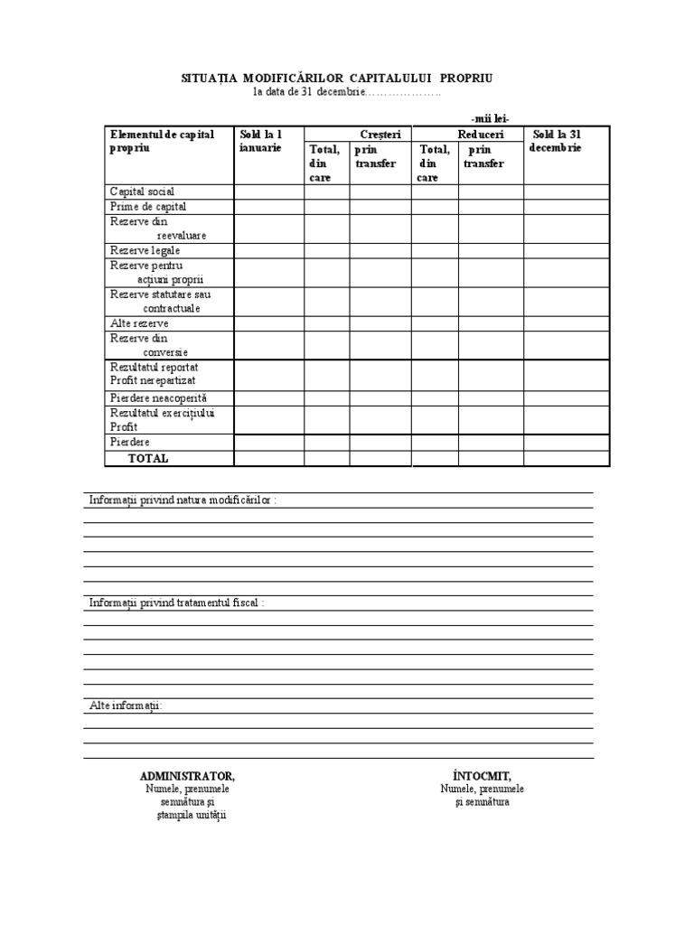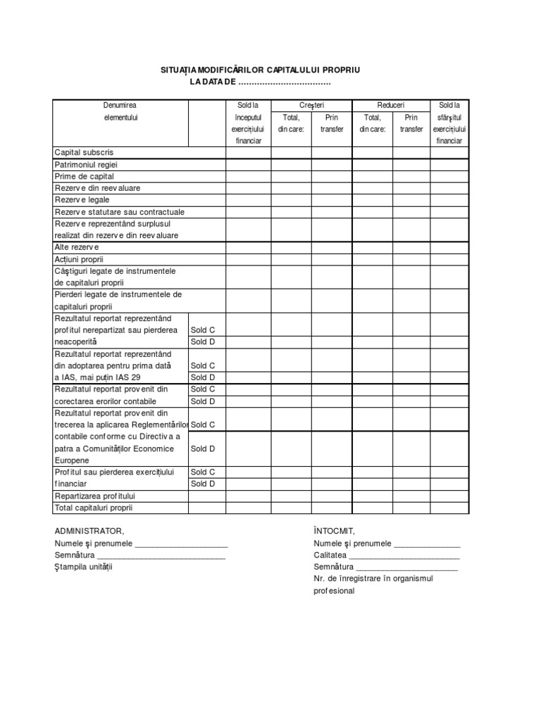 Situatia Modificarilor Capitalului Propriu Contabilitate Fiscalitate Monografii Contabile